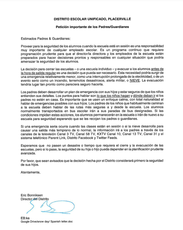 Important Request of Parents/Guardians - Solicitud importante de los padres/tutores