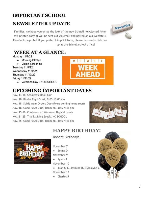 Schnell School - 11/7/22-11/13/22 Newsletter